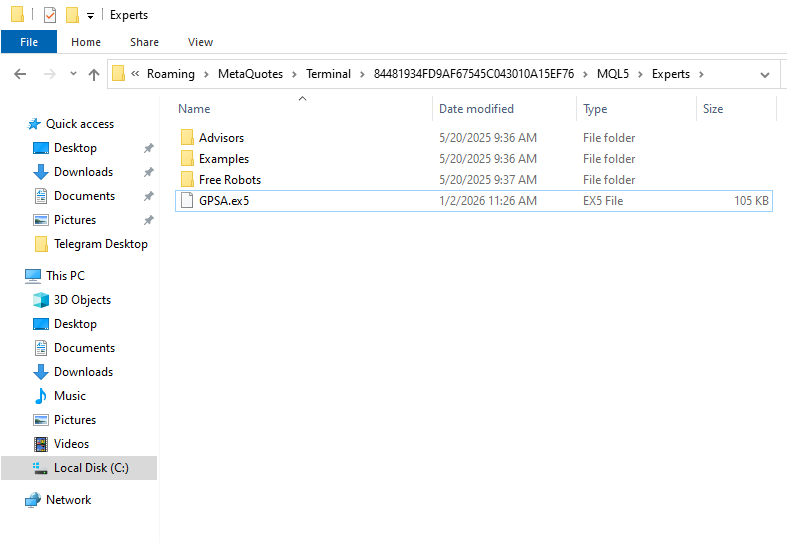 فایل GPSA.ex5 را در مسیر زیر کپی کنید: