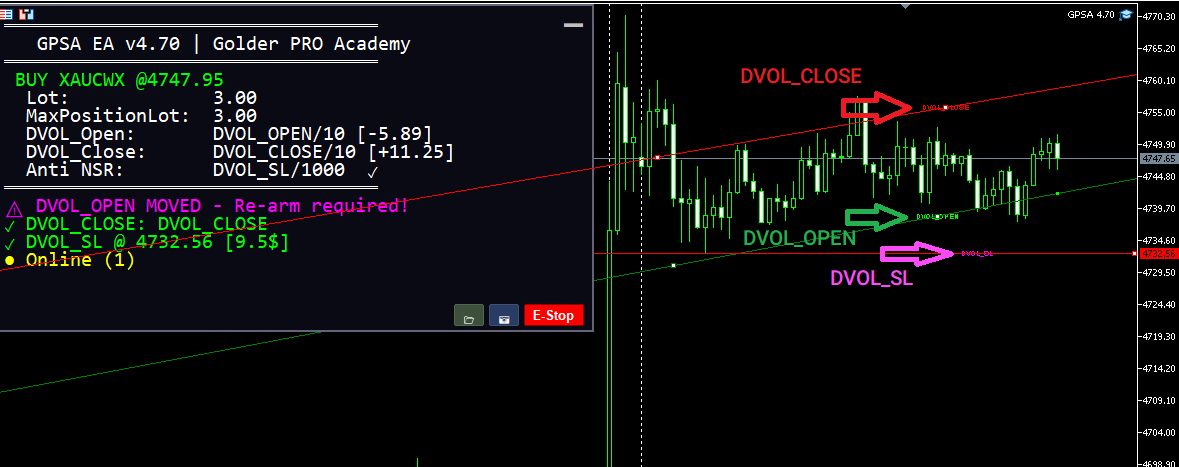 نمایش برچسب DVOL_OPEN/CLOSE/SL روی خطوط در چارت.