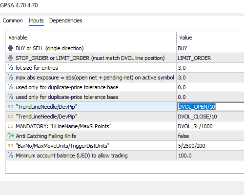 اگر خط DVOL_CLOSE موجود باشد، EA حد سود را برای سفارشات و پوزیشنها تنظیم میکند.