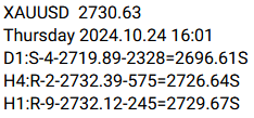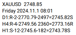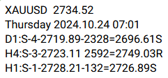 - XAUUSD 2734.52 : نماد معاملاتی را نمایش میدهد که در اینجا طلا به دلار (XAUUSD) است و عدد 2734.52، نرخ لحظه اعلام FVG روزانه را نشان میدهد.