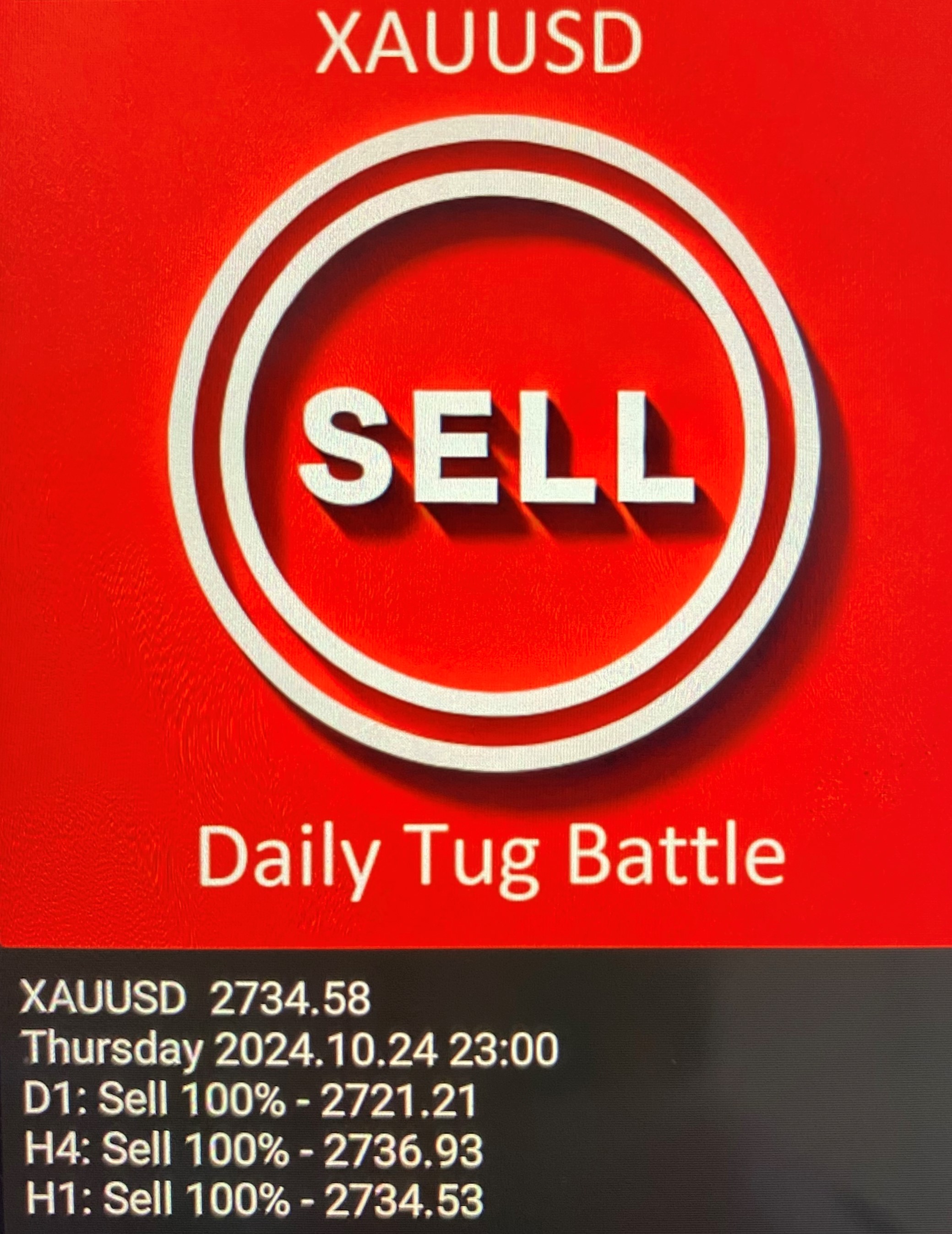 - مثال : تگ بتل مشابه شکل ۱ برای روز ۲۰۲۴.۱۰.۲۴ وضعیت فروش (Sell) اعلام میکند و نرخ لحظه اعلام وضعیت را برای هر یک از معیارهای روزانه، ۴ ساعته و ۱ ساعته نشان میدهد.