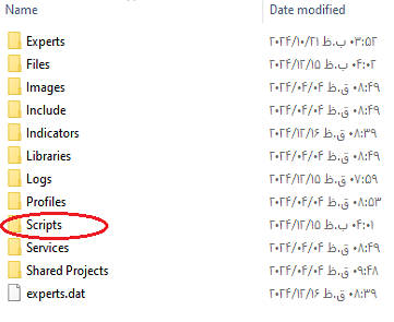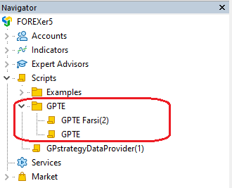 GPTE) ایجاد نموده و فایل را در آن قرار دهید. توجه: در صورتیکه قبل از انجام مراحل بالا نرمافزار فارکسر۵ باز باشد، میبایست؛ نرمافزار را مجدداً راهاندازی کرد تا اسکریپت در منوی Navigator ظاهر شود.