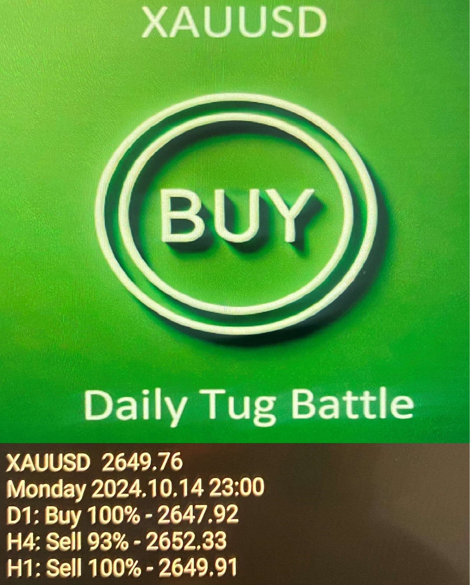 - مثال: تاگ بتل مشابه شکل ۱، برای روز ۲۰۲۴.۱۰.۱۴ وضعیت خرید اعلام میکند و نرخ لحظه اعلام وضعیت را برای هر یک از معیارهای روزانه، ۴ ساعته و ۱ ساعته نشان میدهد.
