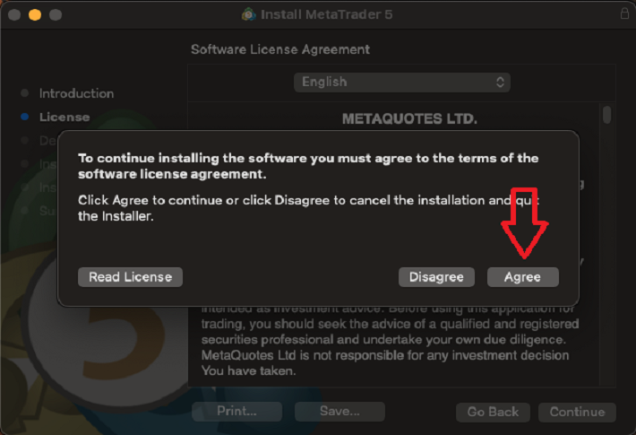 - جهت موافقت با قوانین متاتریدر، گزینه Agree را انتخاب کنید.