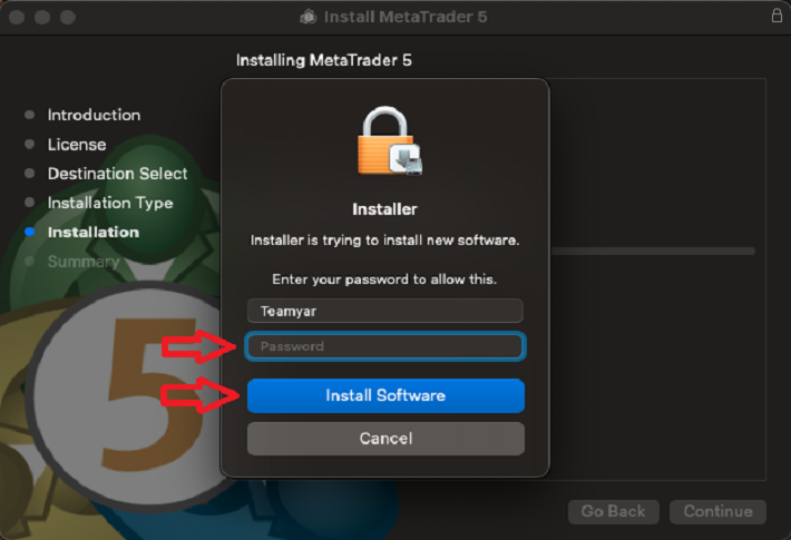 - در صورت داشتن رمز عبور برای کاربری macOS، در این مرحله آن را وارد کرده و گزینه Install Software انتخاب میشود.