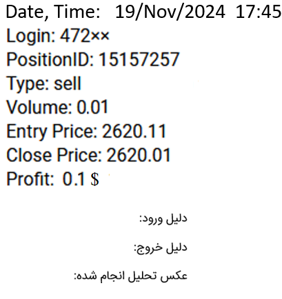 - Entry Price: ثبت نرخ باز شدن معامله. (مانند: 2620.11)