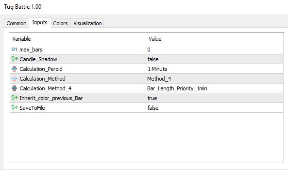 - Inherit Color Previous Bar = true: تاثیر سایز کندل قبلی در کندل فعلی.